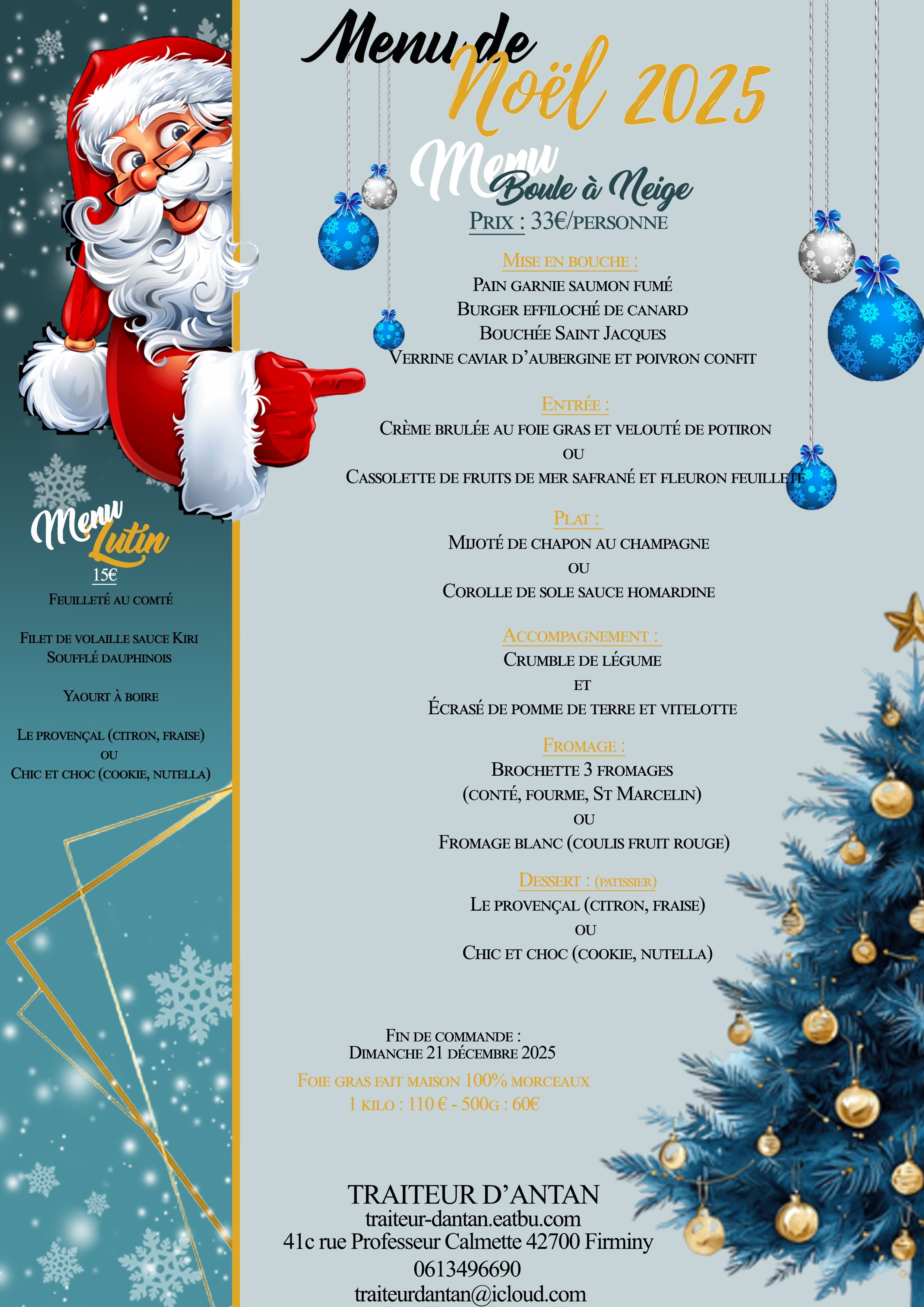 Les prises de commandes se font par téléphone ou par e-mail.